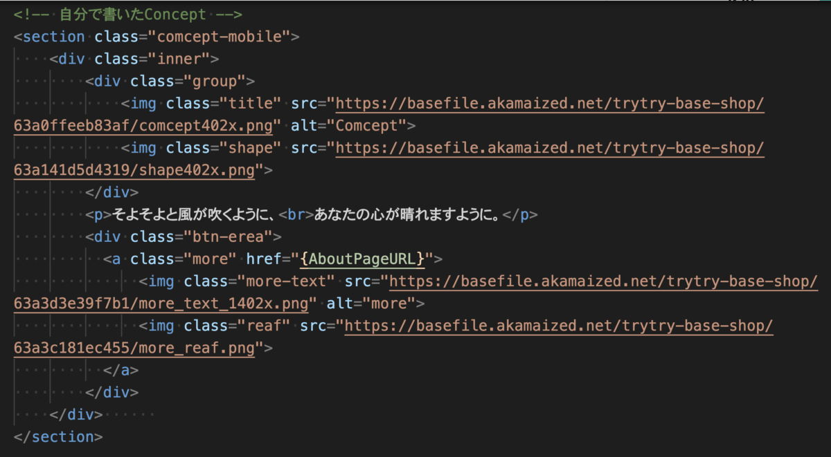 こんな感じで、この <!—緑のところ—> を書いていきます。