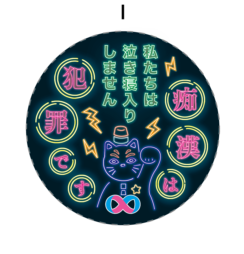 提出するものには、公式が配布するバッチのテンプレートを使用して、「痴漢は犯罪です 私たちは泣き寝入りしません」の文言を入れます。